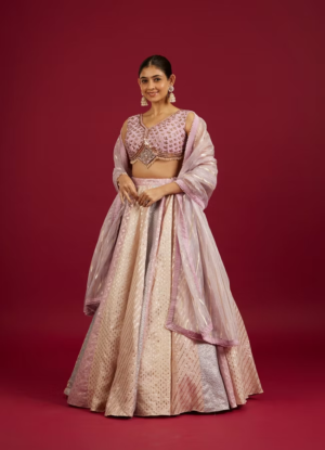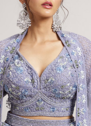 Powder Blue Ogee And Jaal Patterned Lehenga with Sequin And Beaded Embroidery