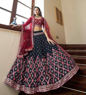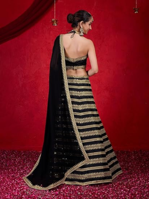 TRENDMALLS Georgette Embroidery Lehenga Choli with Dupatta For Women (L250-Black-Semi-Stitched-FreeSize)
