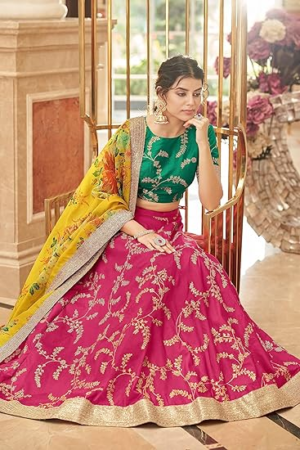 TRENDMALLS Women’s Satin Embroidery Work Lehenga Choli With Dupatta