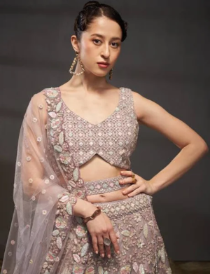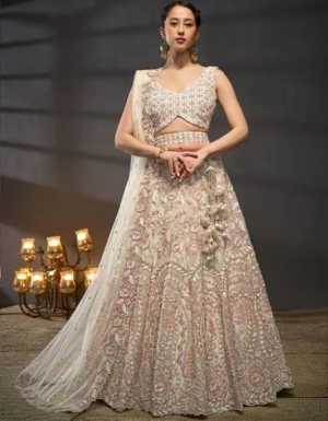 PRODUCT DETAILS ColourCream MaterialGeorgette WorkEmbroidery, Floral, Stone Work, Thread Work, Zari, Sequin Work Items IncludedLehenga , Blouse , Dupatta ,