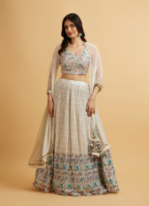 Cream Floral Paisley Patterned Sequinned Lehenga