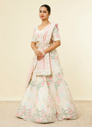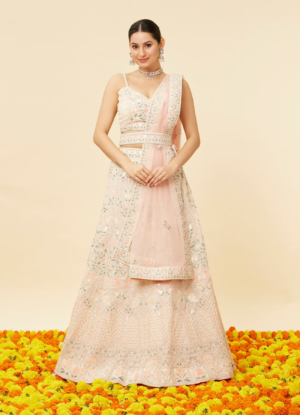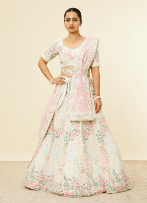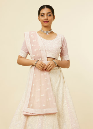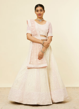 Cream Light Pink Floral Medallion Patterned Lehenga