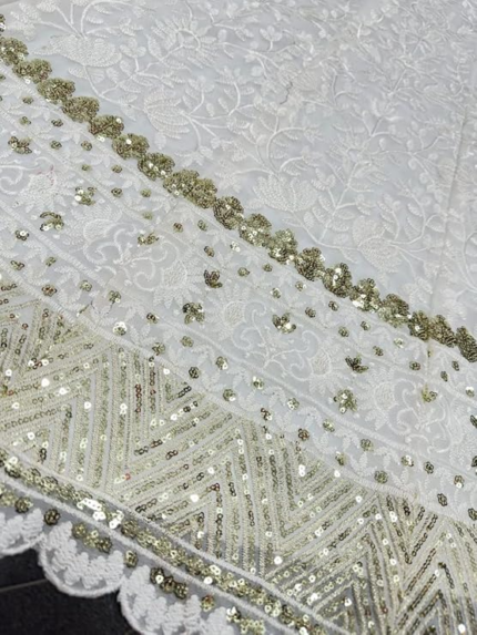About this item Material: Lehenga Blouse Dupatta: Net; Inner: Micro Silk Color: Lehenga: White; Blouse: White; Dupatta: Yellow Measurements: Lehenga