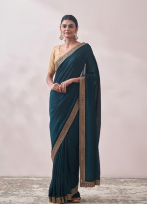 Teal Green Stone Border Saree