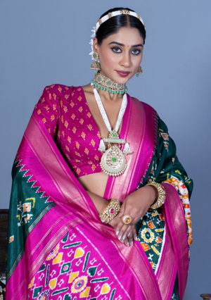 PRODUCT DETAILS ColourGreen MaterialArt Silk WorkWeave Items IncludedSaree , Unstitched Blouse Fabric Wash CareDry Clean Only DescriptionEmbrace contemporary elegance with