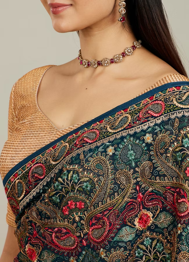 Azure Elegance Georgette Saree