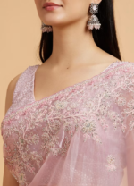 Pink Pre-Stitched Saree Set With Hand Embroidered Blouse