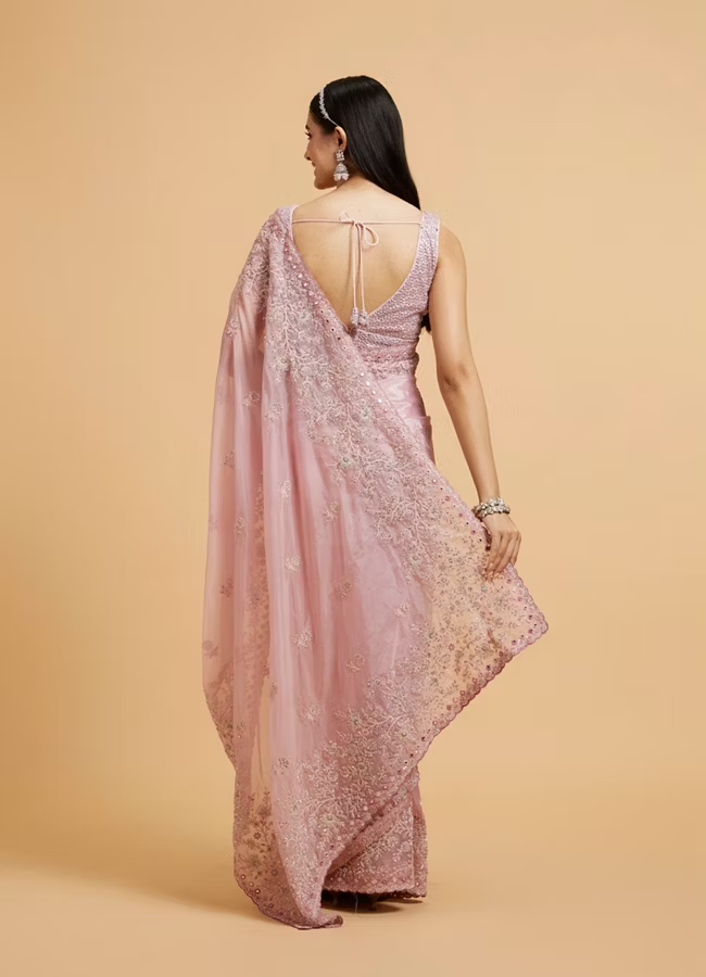 Baby Pink Buta Embroidered Saree with Mirror & Sequin Work