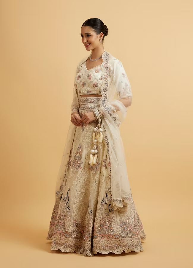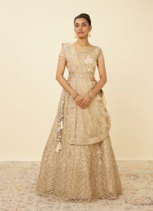 Beige Cream Sitara Embroidered Bridal Lehenga