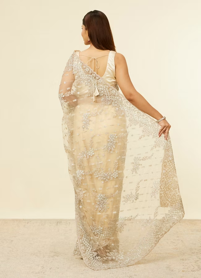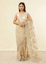 Beige Floral Bel Buti Embroidered Saree