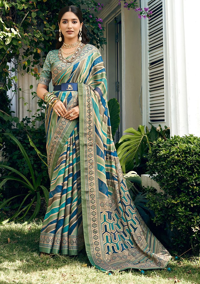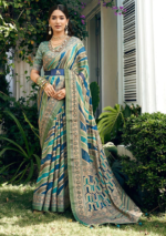 Be the first to review “Blue Abstract Print Georgette Saree Set”
