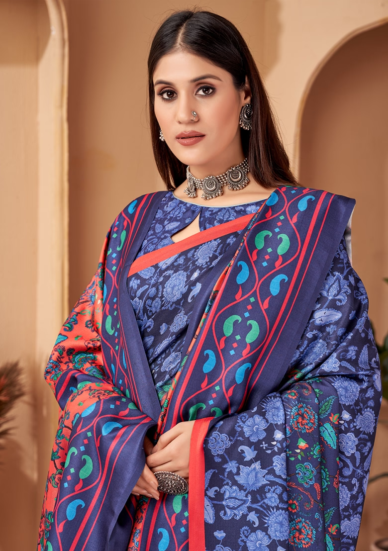 Be the first to review “Blue Digital Print Pashmina Silk Saree Set” Cancel reply