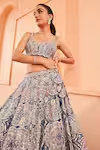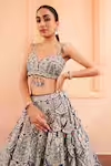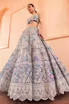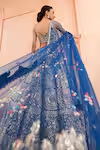 Blue Organza Applique Embroidered Zardosi Blouse Bridal Lehenga Set