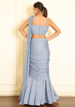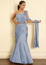 Be the first to review “Blue Pre-Stitched Saree Set With Hand Emoridered Blouse” Cancel reply
