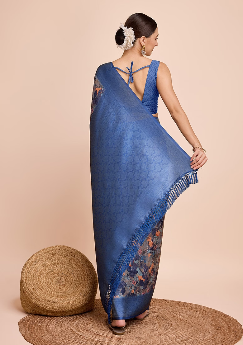 Blue Printed Zari Woven Kanjivaram Silk Saree Set – XSR23049