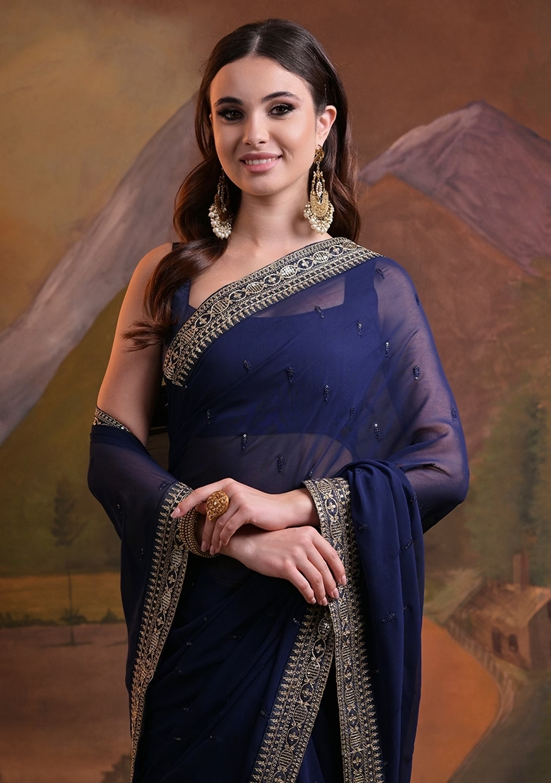 Be the first to review “Blue Sequin Embroidered Georgette Saree Set” Cancel reply