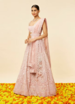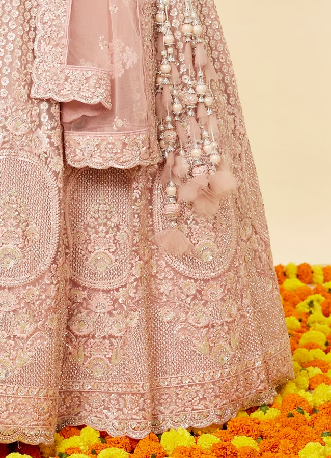Blush Pink Rhinestone and Sitara Embroidered Bridal Lehenga