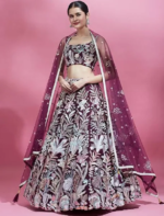 Burgundy – Net Multi-Sequins Work Semi-Stitched Lehenga