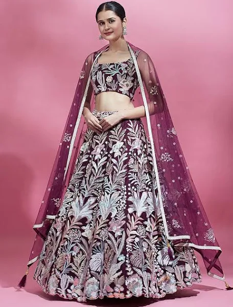 • Lehenga:- Net Full Flare Semi-Stitched Lehenga With All Over Embroidery using Multi-Sequins and Thread Work. Has a Thread Cutwork Border on Hameline.