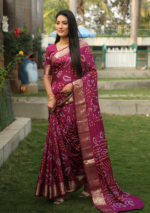Burgundy Zari Woven Handloom Silk Saree Set – XSR22760