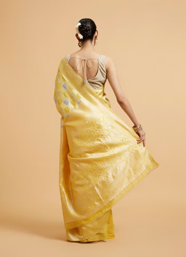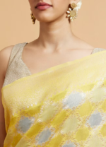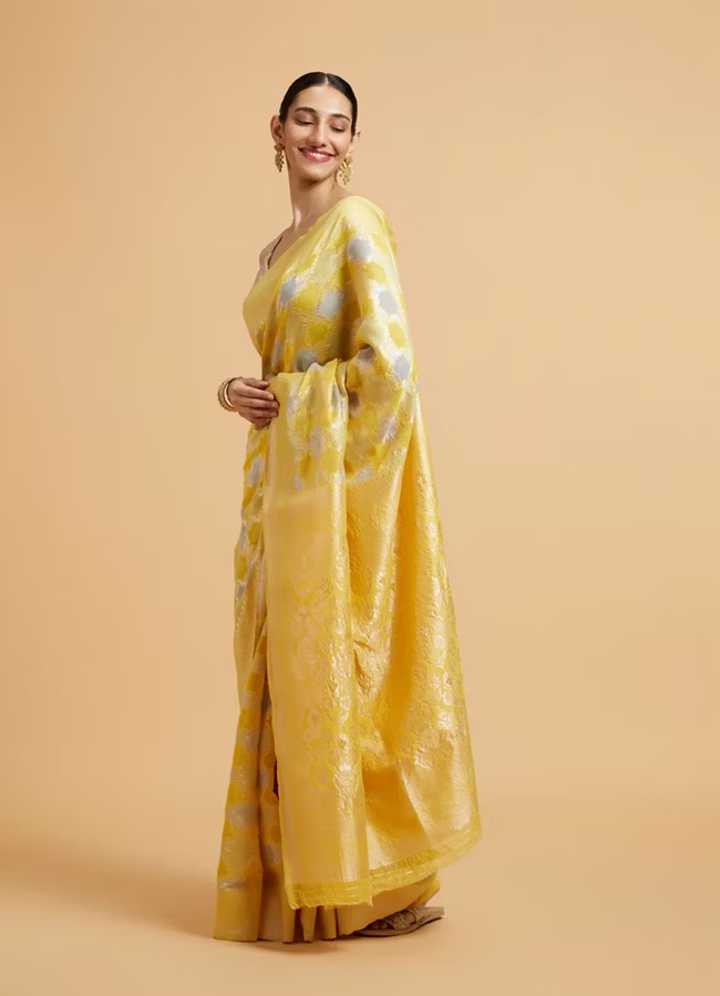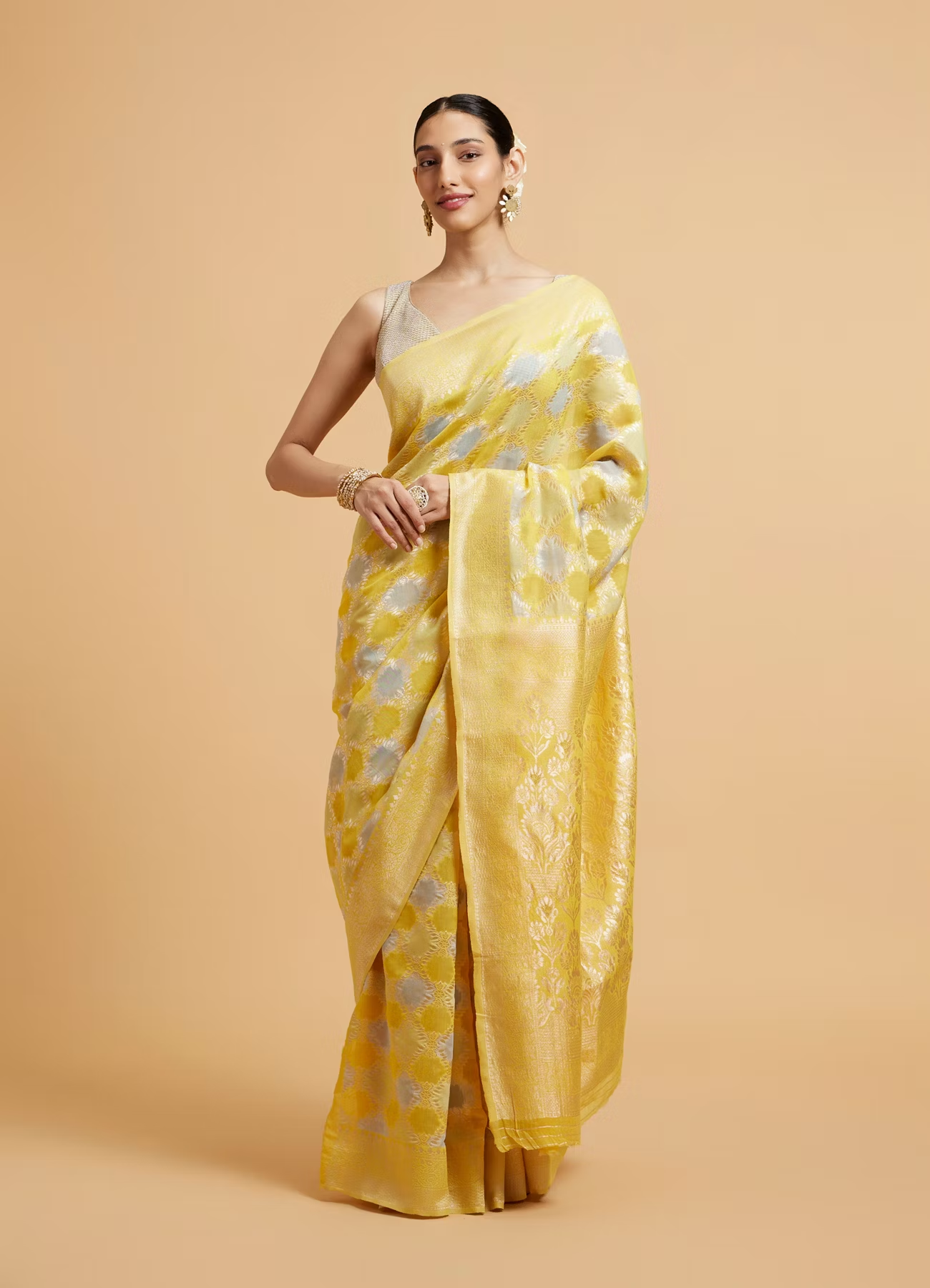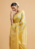Buttercup Yellow Jaal Patterned Saree with Floral Borders