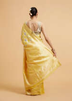 Be the first to review “Buttercup Yellow Jaal Patterned Saree with Floral Borders”