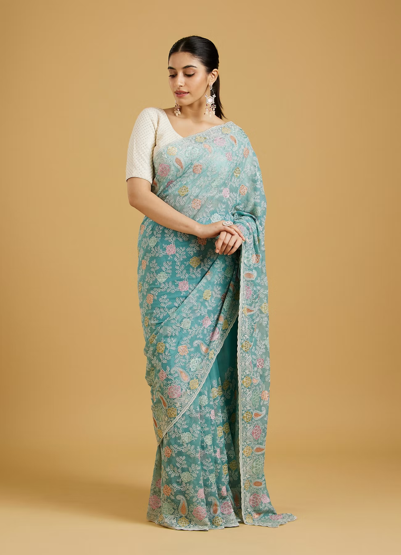Be the first to review “Chic Light Blue Organza Saree” Cancel reply