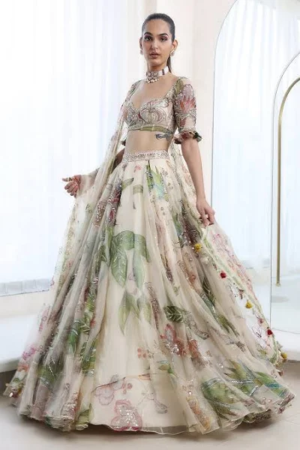 Zeel Clothing Women Off White Floral Organza Wedding Bridal Lehenga Choli for Women Stylish