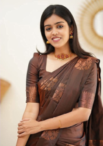 Copper Brown Jacquard Banarasi Art Silk Saree Set – XSR18190