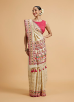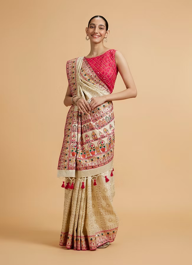 Cream Beige Floral Embroidered Saree with Sequin Work