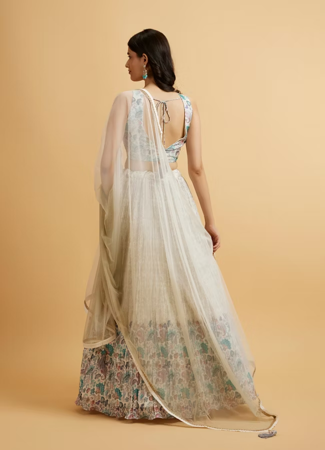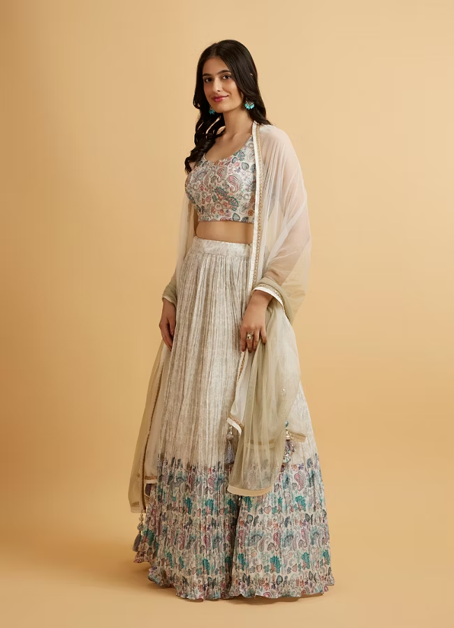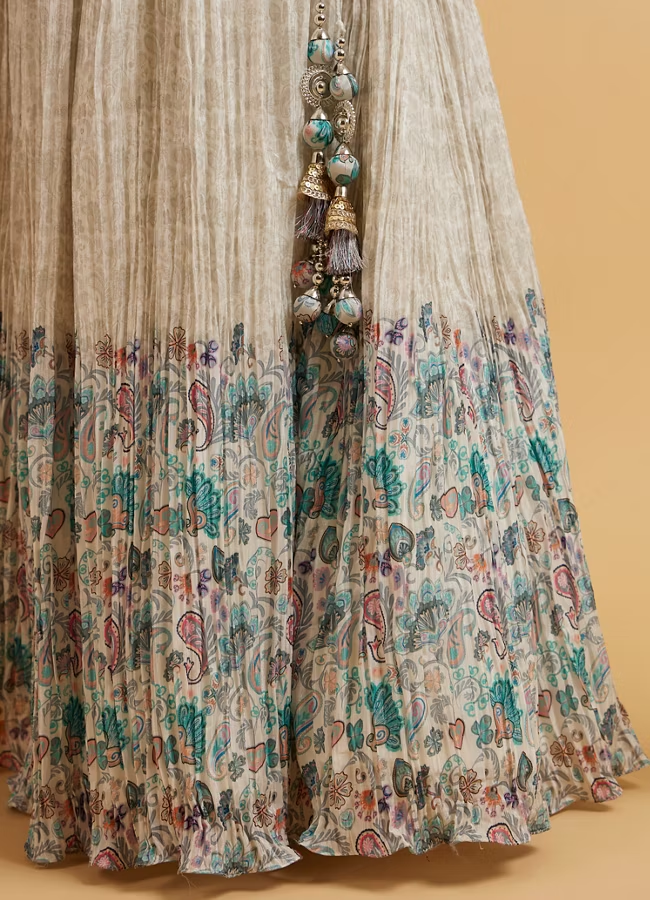Cream Floral Paisley Patterned Sequinned Lehenga