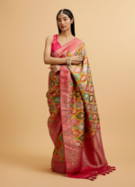 Cream Zari Weave Art Silk with Rani Accents Saree