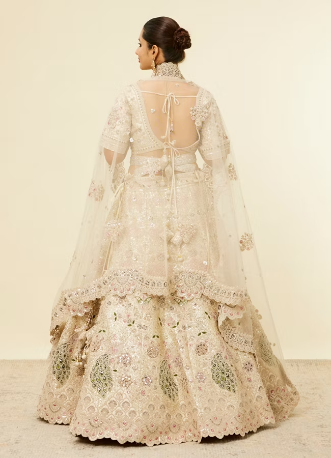 Dark Cream Floral Patterned Bridal Lehenga with Peacock Motifs