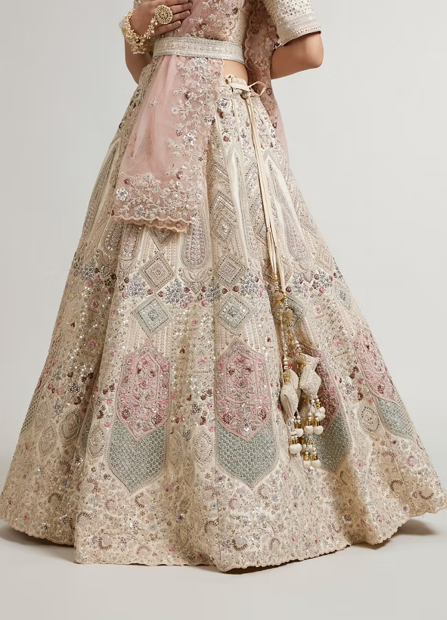 Dark Cream Lehenga with Motifs, Beads And Sequin Work