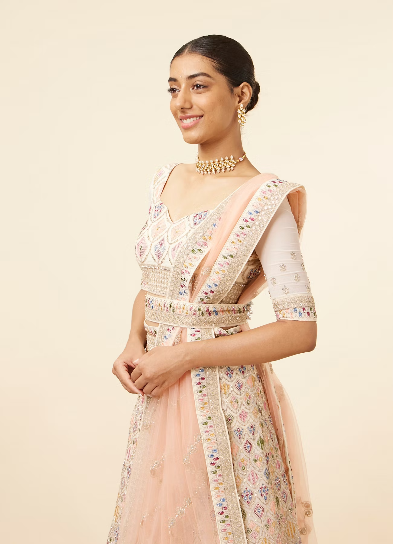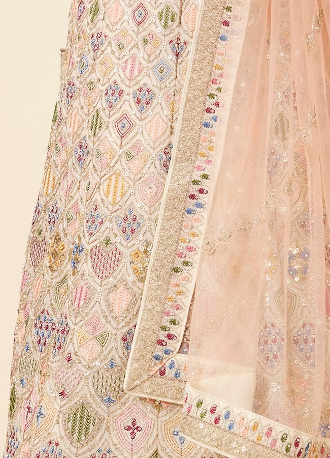 Dark Cream Multi colored Lehenga