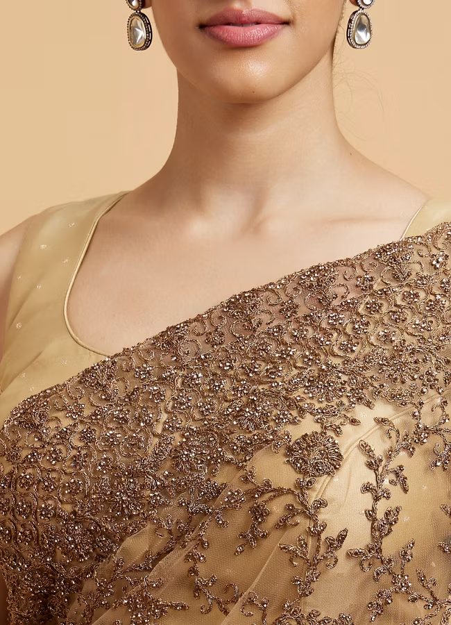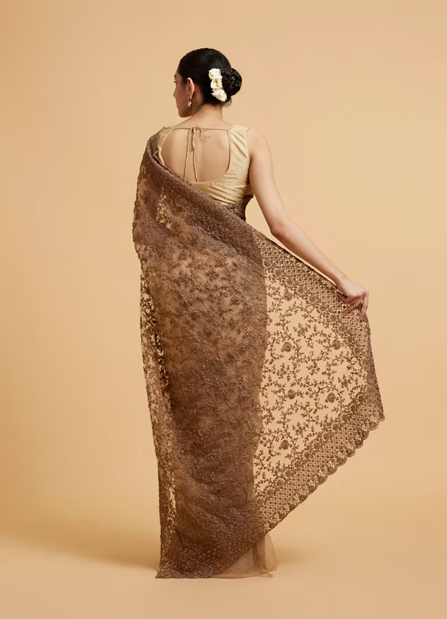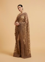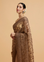 Dark Fawn Bel Buti Embroidered Saree with Stone Work