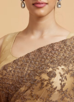Be the first to review “Dark Fawn Bel Buti Embroidered Saree with Stone Work” Cancel reply