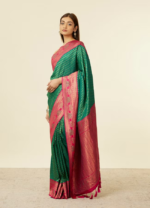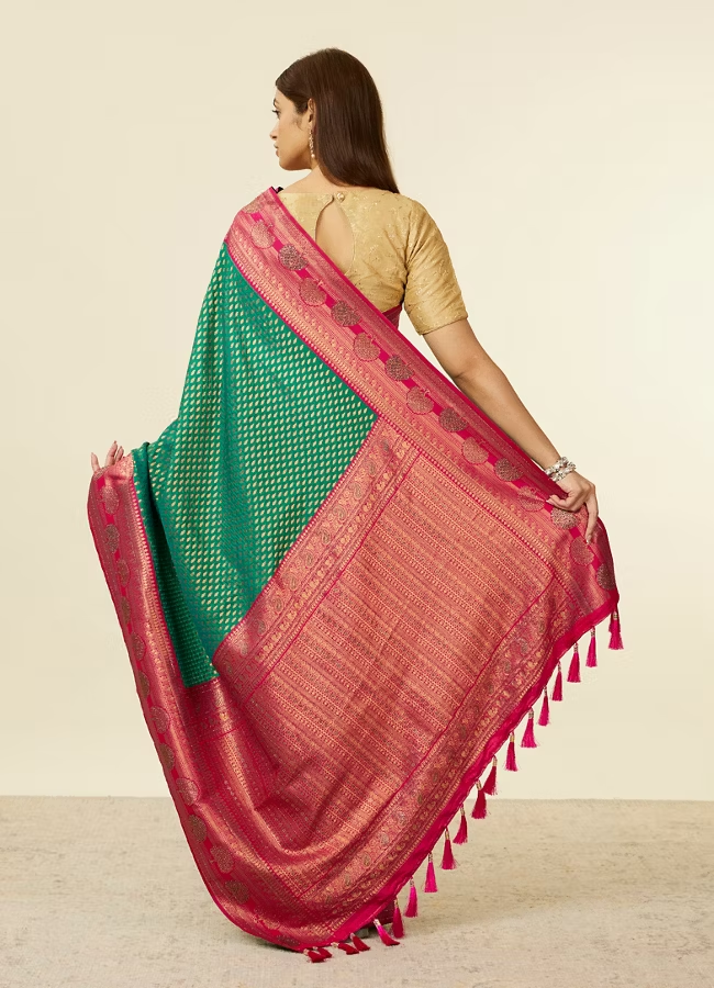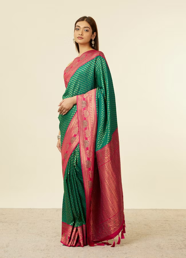 Dark Green Floral Buta Patterned Saree with Latkan Trimmings