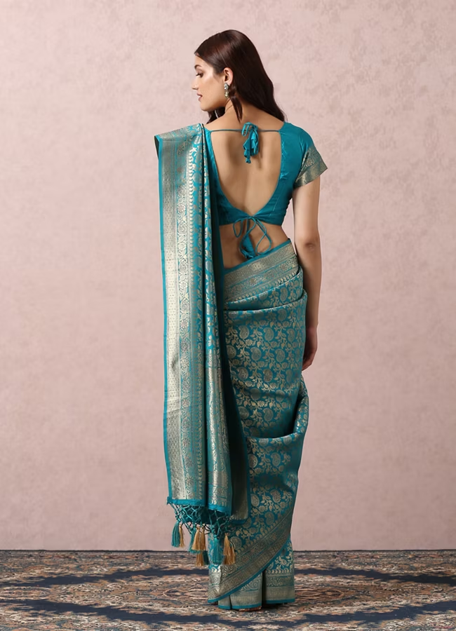 - DescriptionImmerse yourself in the splendour of this Emerald Green Saree, perfect for engagements or mehendi. Crafted from the finest silk, this saree showcases detailed zari, weave, stone work and embroidery design for a truly celebratory look. Shimmer and shine at every festival or wedding you attend. A must-have for all elegant soirées.