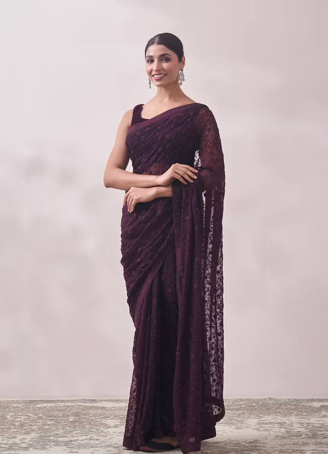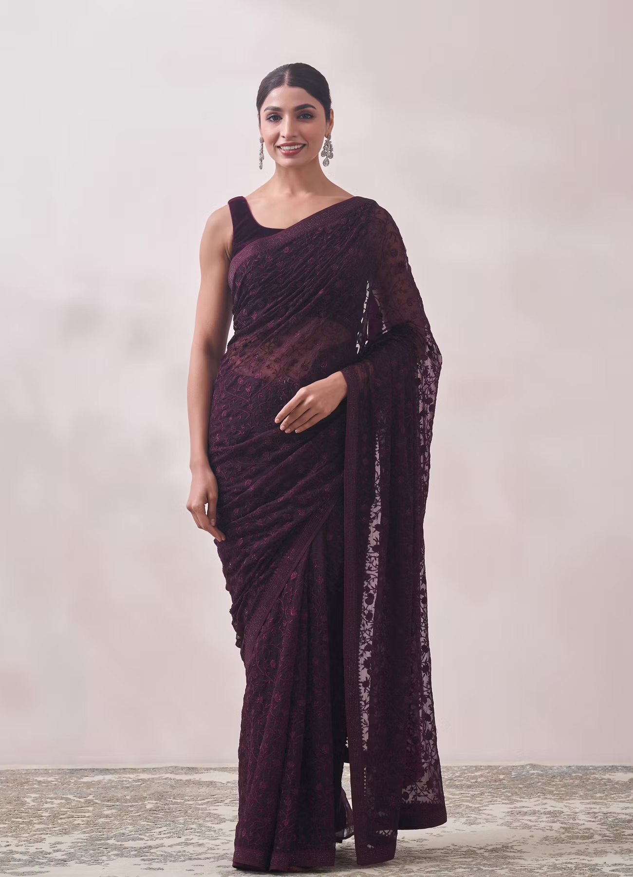 Be the first to review “Dark Magenta Embroidered Organza Saree” Cancel reply