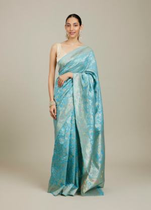 Petrol Blue Sequin Embroidered Georgette Saree Set