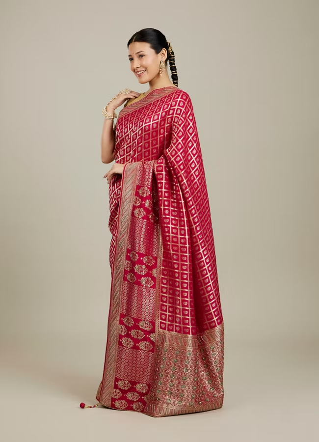 Be the first to review “Dark Pink Zari Embroidered Bridal Saree” Cancel reply