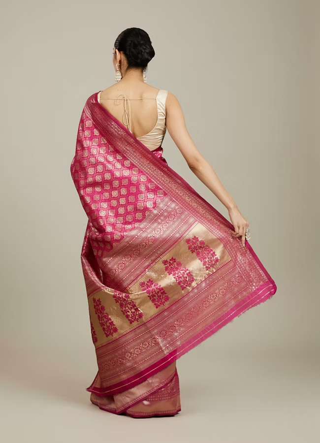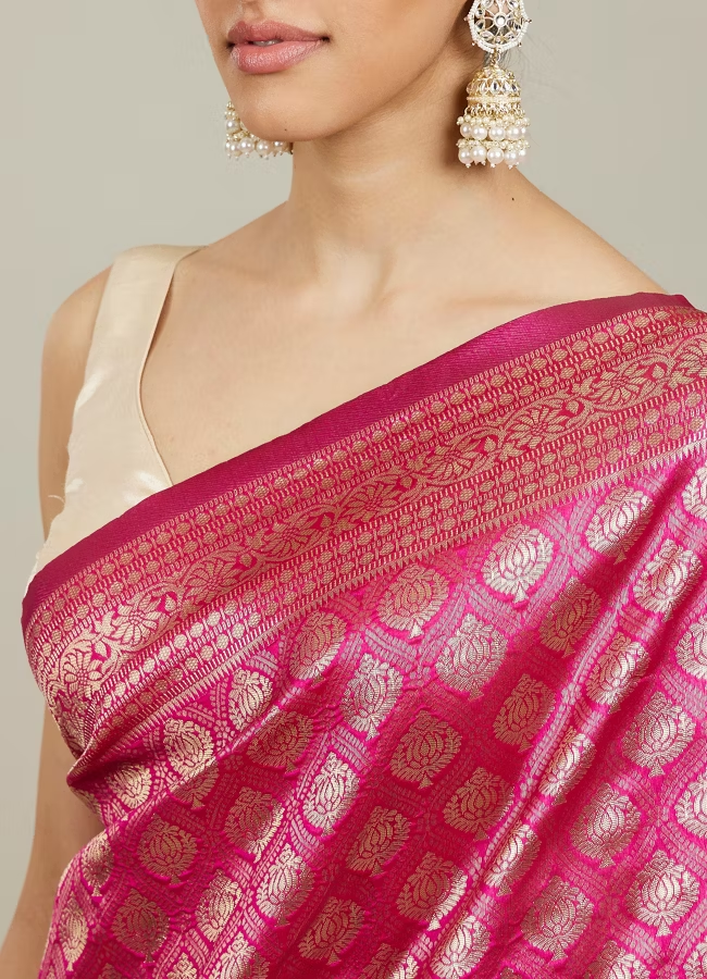 Dark Pink Zari Weaved Saree
