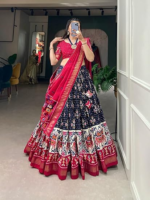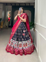 - Lehenga Fabric: Lehenga Fabric : Tussar Silk ||Lehenga Work : Minakari With Foil Print || Blouse Fabric: Tussar Silk || Dupatta fabric: Tussar Silk || Inner Fabric : Micro Cotton