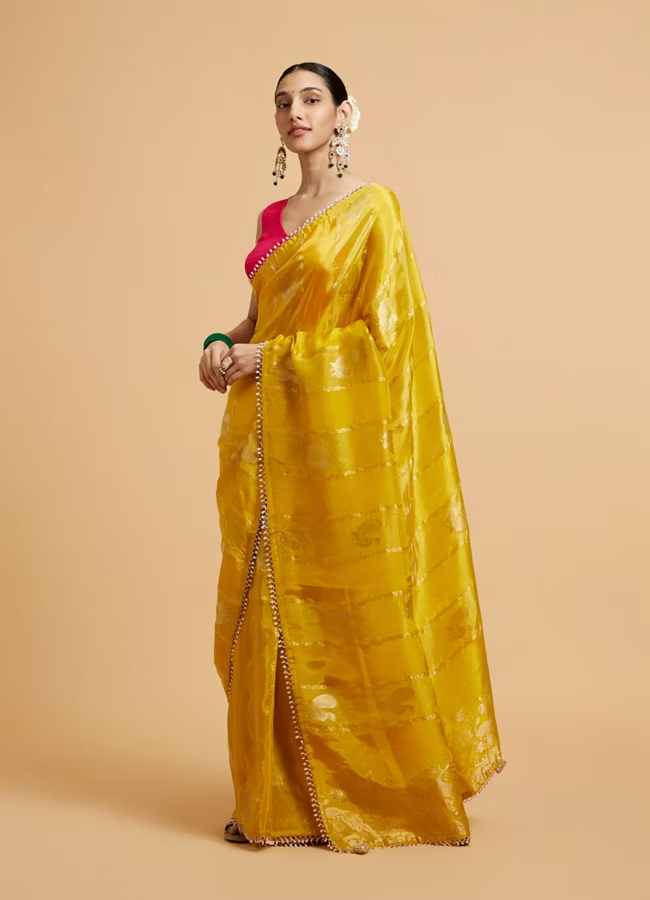 Effulgent Mustard Satin Saree