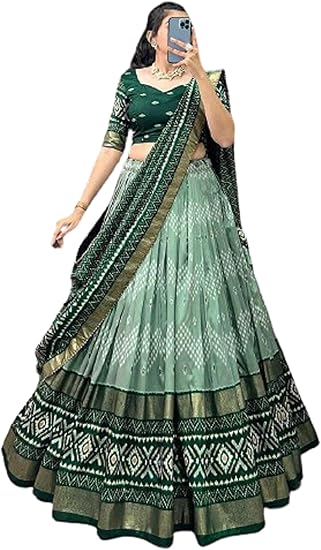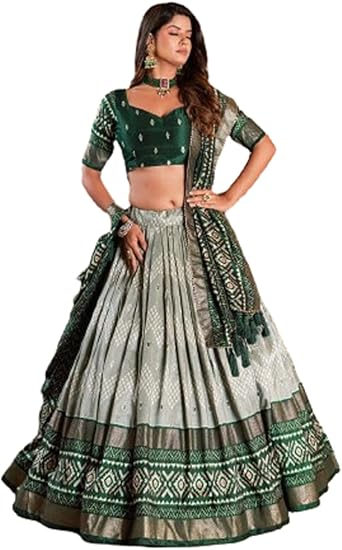 Women’s Patola Print Foill Work Tussar Silk Lehenga Cholii (FLOWER)