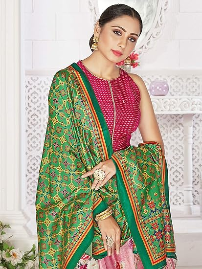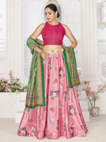 - Lehenga Color :- Pink || Blouse Color :- Pink || Dupatta Color :- Green