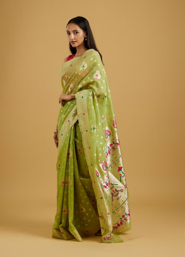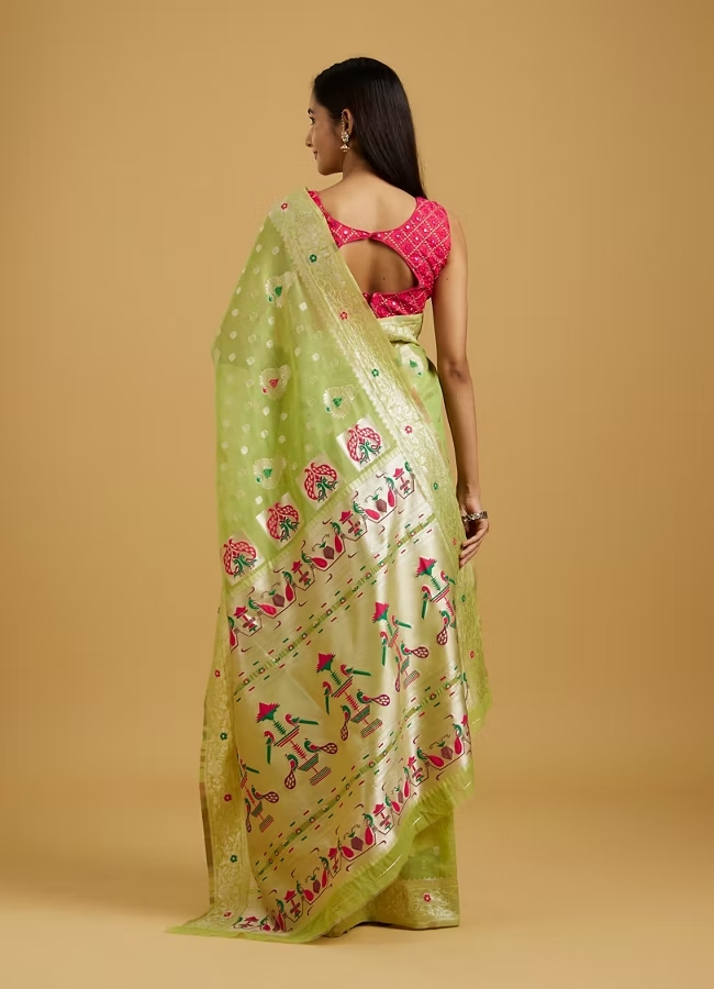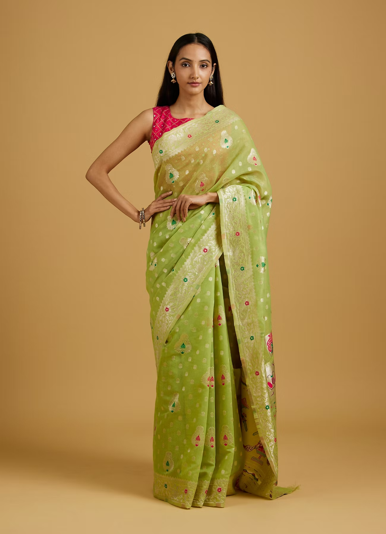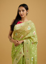 • DescriptionOur Emerald Elegance Saree in radiant Green Art Silk is designed to showcase your dress-to-impress style. Perfect for any occasion, this elegant attire melds tradition with a dash of contemporary, making you a fashion muse.