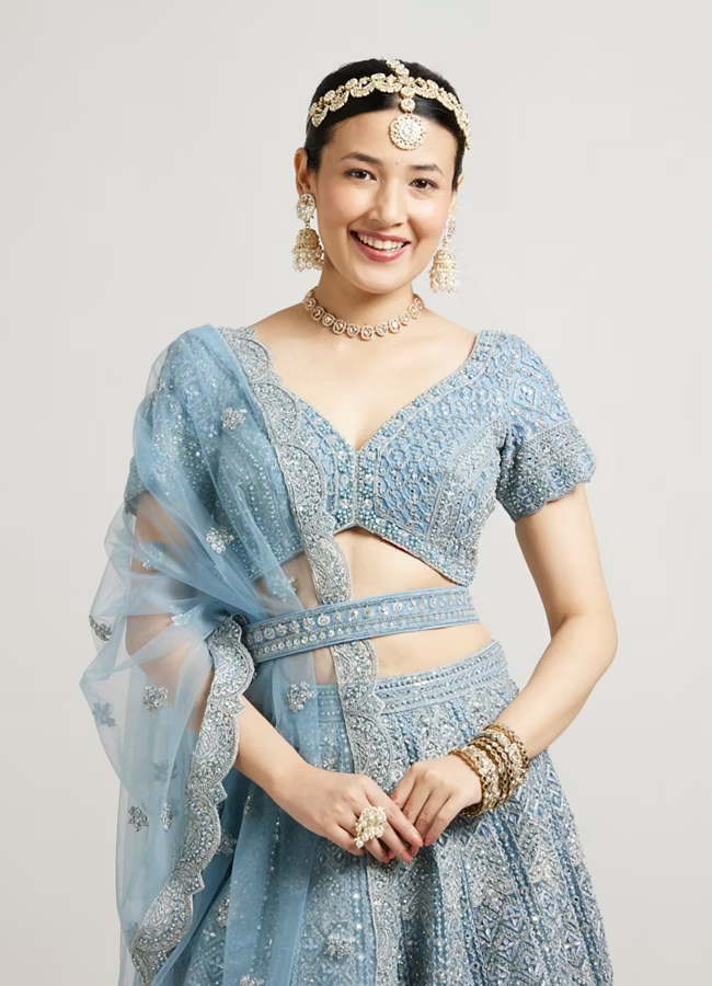 Ethereal Blue Net Lehenga