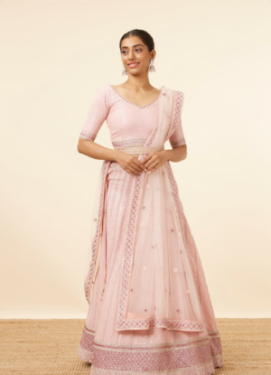 Pink Sequined Lehenga with Zari Work